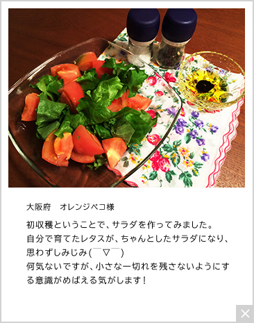 大阪府 オレンジペコ様 初収穫ということで、サラダを…